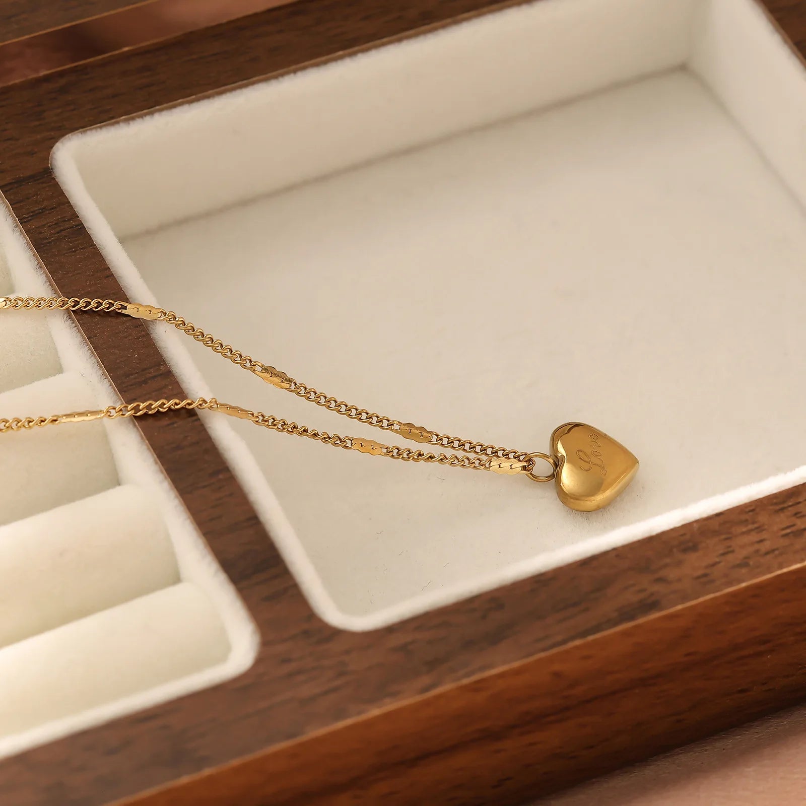 Goldene Halskette mit Herzanhänger – Edelstahl, glänzendes Finish