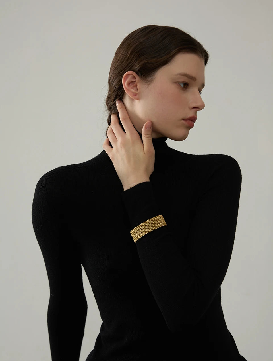 Dieses Armreifarmband aus Edelstahl besticht durch seine gewebte Netzstruktur , die das Licht elegant einfängt. Seine breite, offene Form sorgt für perfekten Tragekomfort und verleiht gleichzeitig einen markanten, modernen Look.
