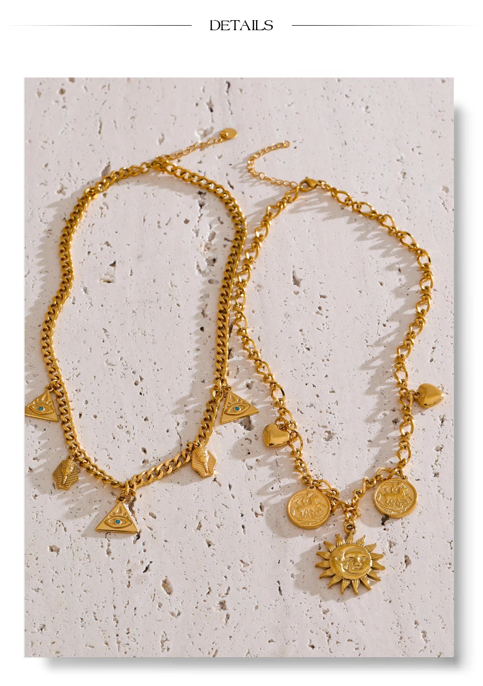 Halsketten mit Sonne- und Ozean-Anhänger – Goldfarbener Edelstahl