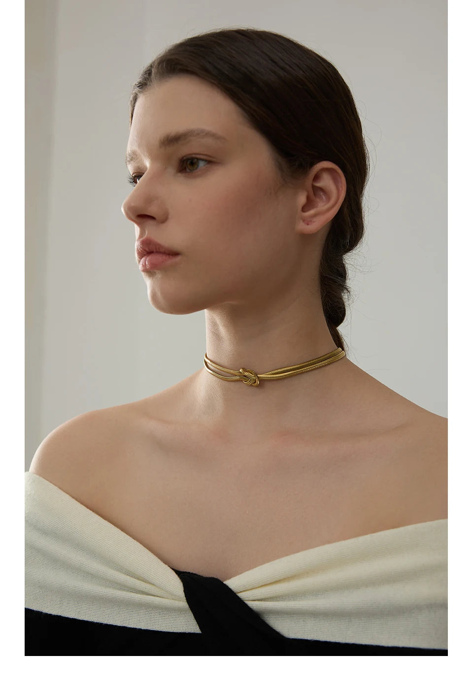 Knot necklace and bracelet – 316L stainless steel, gold snake chain