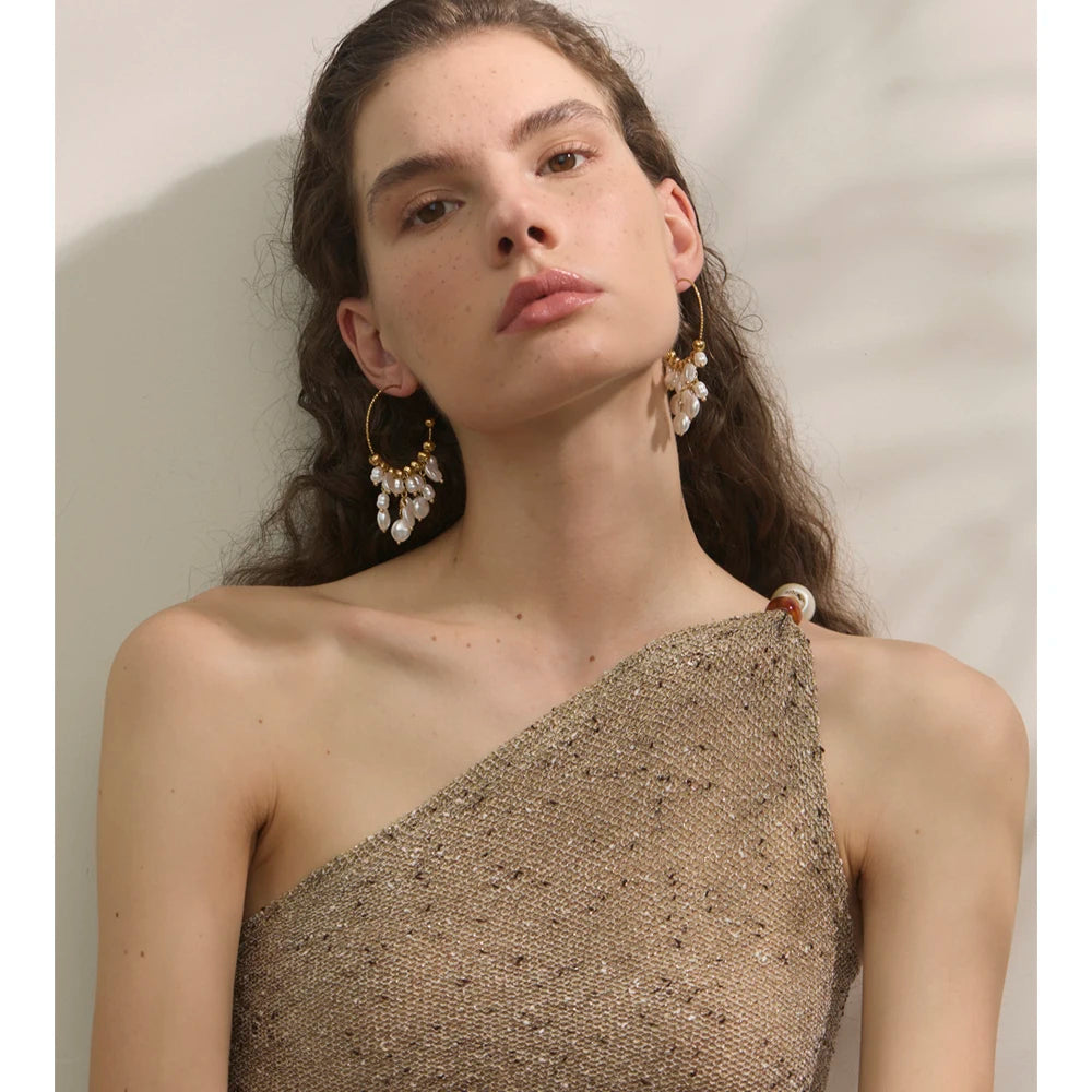 Ces boucles d’oreilles se distinguent par leur anneau doré orné de perles baroques . Leur silhouette ample et délicatement texturée apporte une touche affirmée tout en restant élégante et facile à porter.