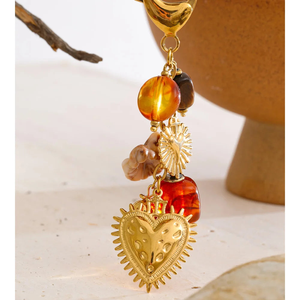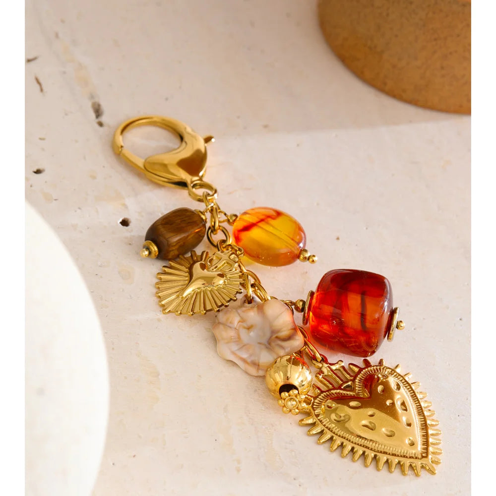 Le cœur en résine apporte une belle touche colorée, tandis que la finition dorée lui donne un éclat lumineux et féminin. L’ensemble forme un accessoire durable, soigné et travaillé avec précision.