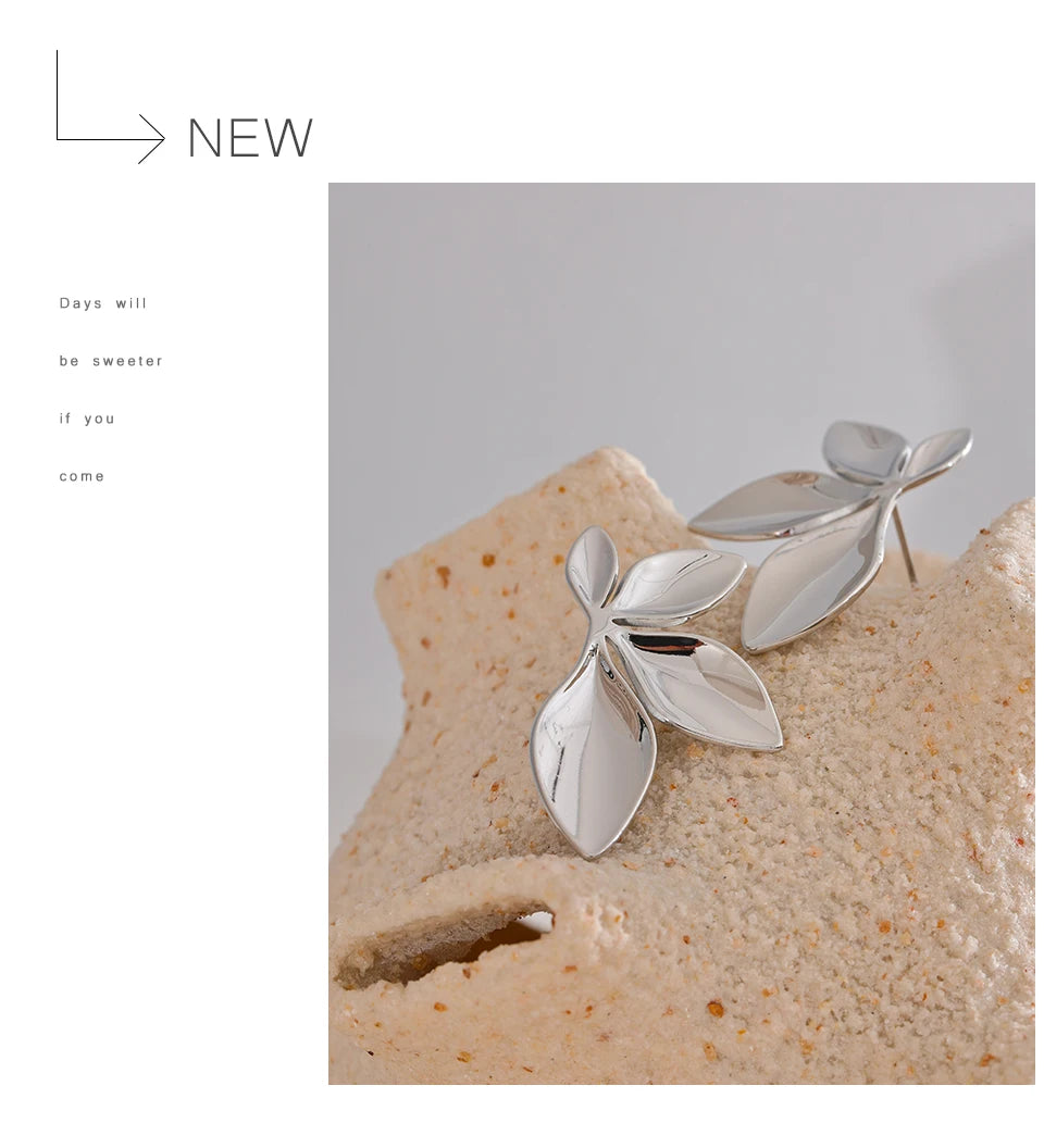 Boucles d’oreilles feuillage – Acier inoxydable doré, design sculpté