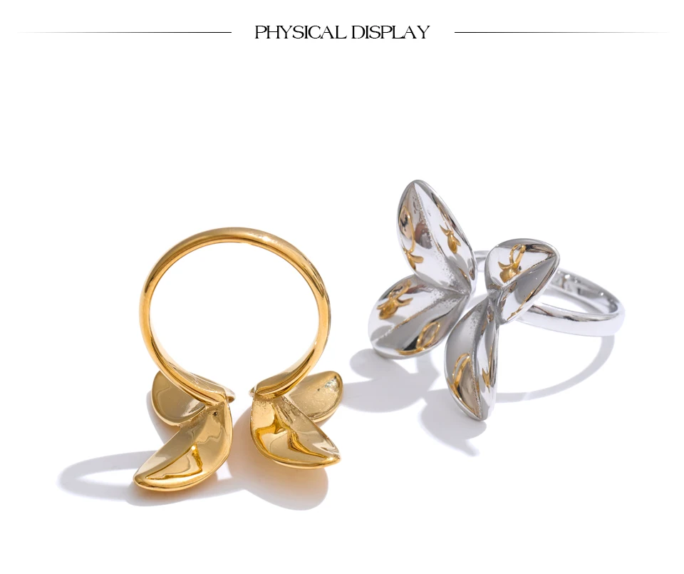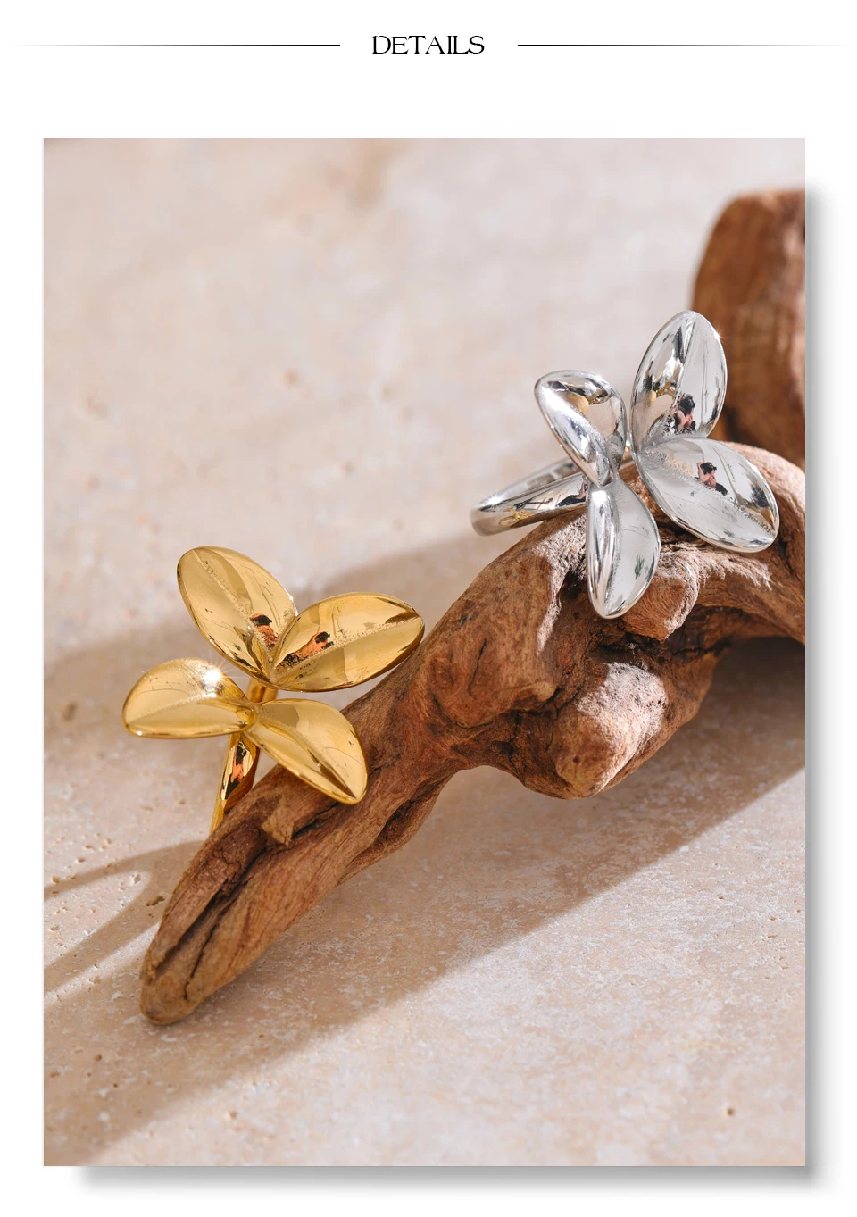 Apportez une touche florale à vos tenues avec cette bague réglable au design lisse et raffiné. Inspirée par la nature, sa forme sculptée de fleur en acier inoxydable poli reflète la lumière avec douceur et sophistication. Un accessoire moderne, minimaliste et résolument chic.